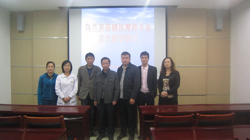 2014年5月14日下午,烏蘭美保健按摩第一次教學(xué)研討會(huì)在烏蘭美多媒體教室舉行,參會(huì)人員有天行健養(yǎng)生會(huì)館總經(jīng)理韓澤明、店長(zhǎng)成偉周、培訓(xùn)師王秀美,烏蘭美副總經(jīng)理袁秀林、教務(wù)處負(fù)責(zé)人聶彥霞及保健按摩專業(yè)教師孫正捷、王俊芬。